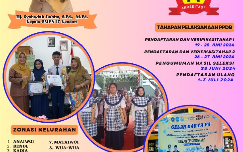 PPDB SMP N 17 KENDARI TAHUN AJARAN 2024/2025 INFO PPDB DI SMP N 17 KENDARI Sosialisasi Dec 16, 2021 PENERIMAAN PESERTA DIDIK BARU DI SMP NEGERI 17 KENDARI TAHUN AJARAN 2024/2025 Tags SMP N 17 Kendari PPDB Kurikulum Merdeka Merdeka Belajar 380 views